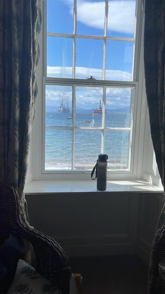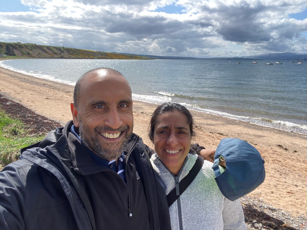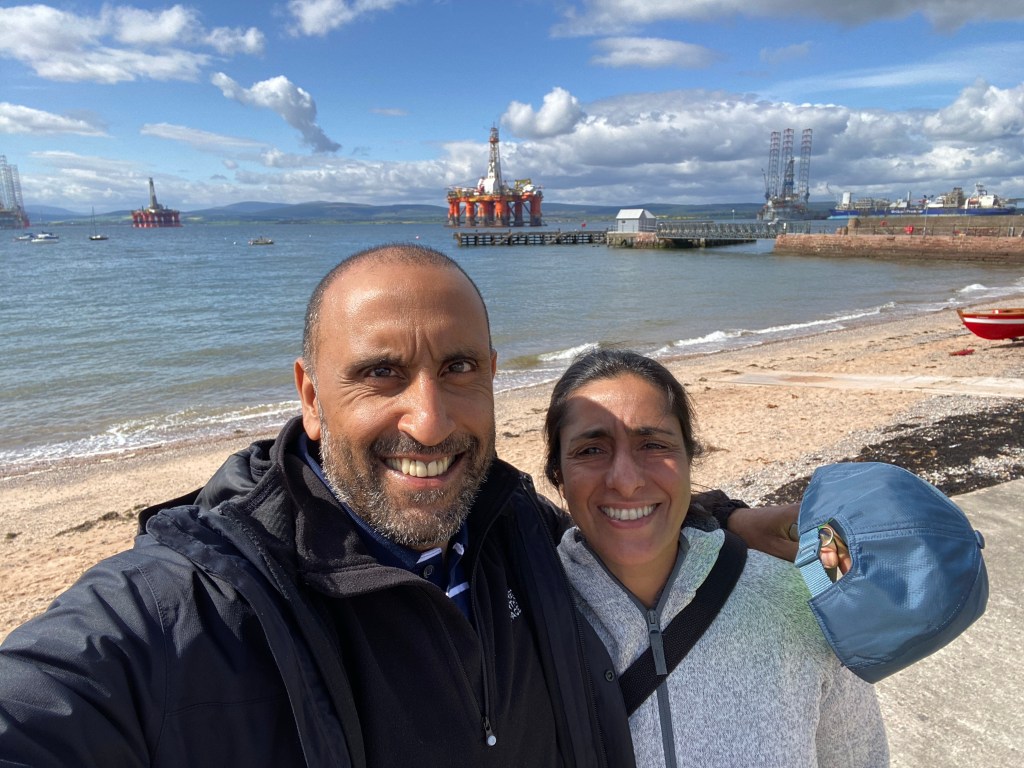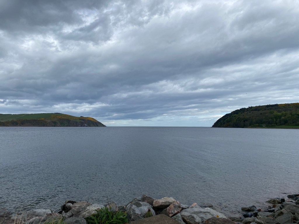 It was absolutely freezing out there, a cold constant breeze…photos taken and back in to the warm car!!! We headed back down the 3 mile road and went to Aviemore town centre. This was deja vu, we had been here before, yep, five years ago and we passed the hotel where we had our first haggis neeps and tatties!!! We stopped at Tesco, got a few provisions, had a quick walk and look in a couple of camping shops (the whole street is full of such shops!!!). 15 minutes later and we were already fed up. Rather than have a coffee here, we decided to continue to Cromarty. Guess what…it was back on the A9!!!! 🤣🤣🤣. Sat nav said we were only 1 hour away. We passed river this and river that, too many rivers to remember, but all gave us a fantastic view while driving across the bridges. Could we swim in them?? Always a possibility but the undercurrents could be so dangerous!!! Eventually we turned right and off the A9 and onto a country Lane, just wide enough for two vehicles. I looked at the sat nav…still several miles to go…where on earth were we headed…the road didn’t seem to end, we slowed every now and then, overtook the odd camper van but always stayed within the speed limit (I kept up with the car in front 😜🤣😜🤣😜). The roads were very near to the coast but we weren’t sure where exactly we were. On we went and soon enough the sat nav said left, then right and finally – you’ve reached your destination. I looked at Nisha….why I hear you all ask…well, even before asked why, I asked Nisha where the hell are we??? This is why….
