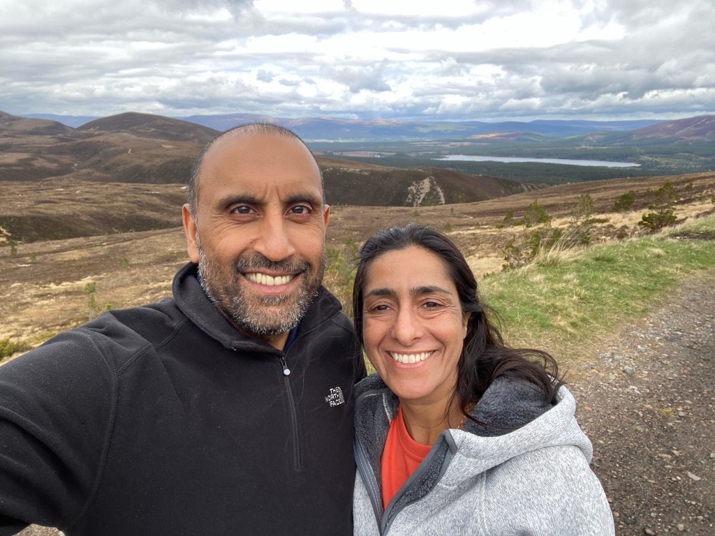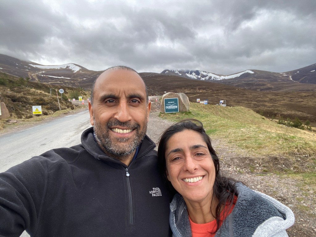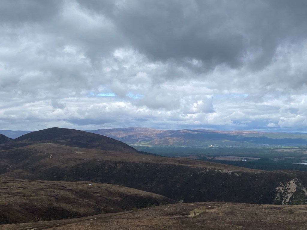 Back in the A9 up towards Cromarty we go. The A9 is the same as the A1M – it takes you further North 🤣🤣🤣. Coming up to 45 minutes driving and the sign for Aviemore is displayed. Aviemore is a town within the Cairngorm National Parks. We exit and drive up towards the mountain railway. On the way, Nisha telephoned tourist information who inform us that the train to the tip is closed until August. Hey ho, we still drive to the tourist area. When we arrive we see signs that the whole place is being renovated but the facilities are open. Should we go in….no chance, the car park is empty…we turn around and park up. Now the views from up here are awesome…take a look…