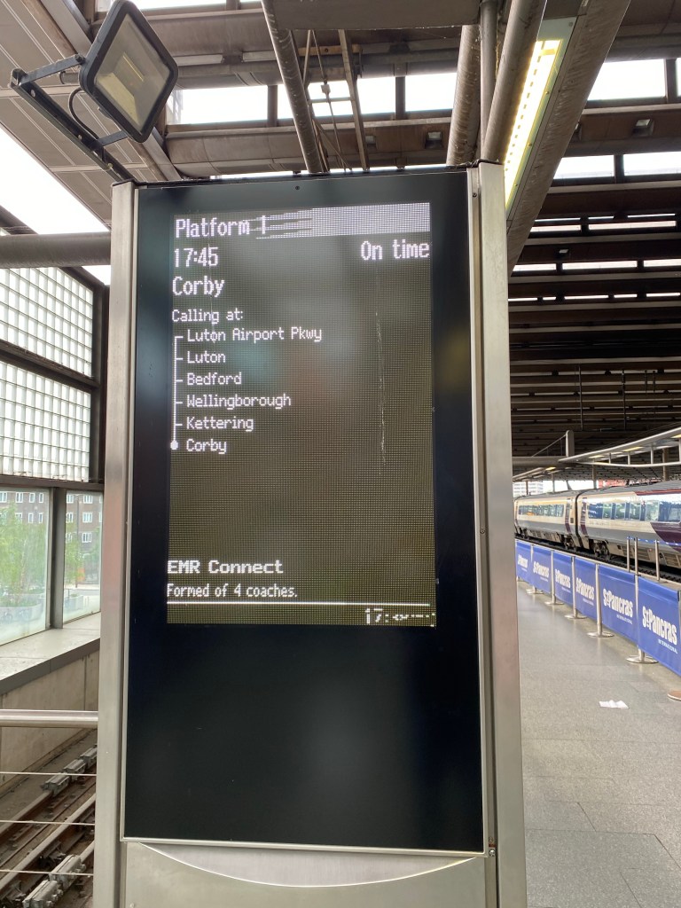 We weaved through the throngs of locals tourists to the National Rail ticket office, 2 tickets to Luton Airport Parkway please…are you sure it’s Parkway and not Luton Aiport asked the lady…Nisha was puzzled, I just said yep, that’s where the shuttle passes (well, I hope it does 🤣🤣🤣)…8 minutes till the train departs….DAMN…no time to get a coffee…yep…decaf with oat milk 😜😜. Platform 1 here we come!!! Up the escalator and there’s the platform. We’re on, and even found a couple of seats. No delays!!! That’s a bonus…we’re on our way!!! First stop is Luton Airport Parkway…RESULT!!! We could have stayed onboard to Kettering or even Corby (yes Vikki, we know your a Coby lass 🤣🤣🤣) but Kris is in London, Vikki in Turkey…we’ll stick to our original plan 🤣🤣🤣
