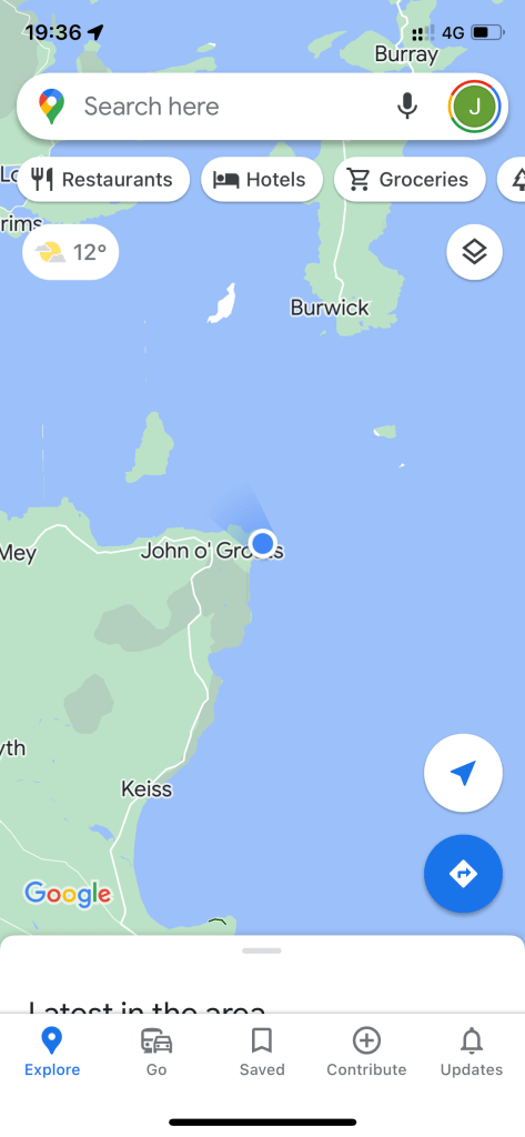 It was raining now, the light was fading and the clouds descending so off to our hotel in Thurso. Only a 30 minute drive. The rain was getting heavy and luckily hardly any vehicles on the road. The journey was straight forward. The hotel, a Premier Inn is new and the rooms look new. Check in was on a self service terminal, very quick and straight forward. We’re exhausted tonight, so an early night…but hold on…Spurs qualified for Champions League football today so will be watching MOTD!!!