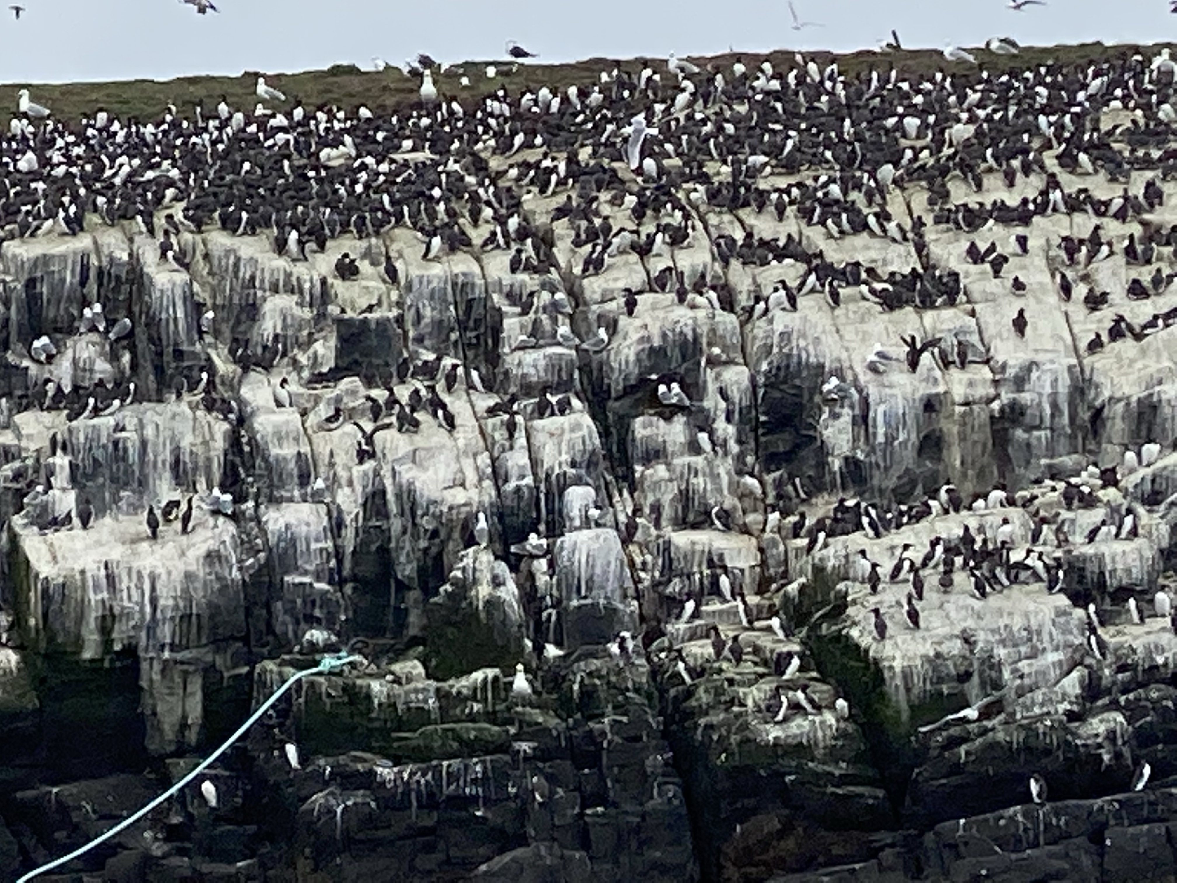 We saw birds and water…more birds, more water, we saw birds, seals and even more water!!! We saw puffins (guide says 70,000 but we only counted a few thousand 😜), guillemots, razorbills, terns, and Atlantic and grey seals, and more water!!! 🤣🤣🤣